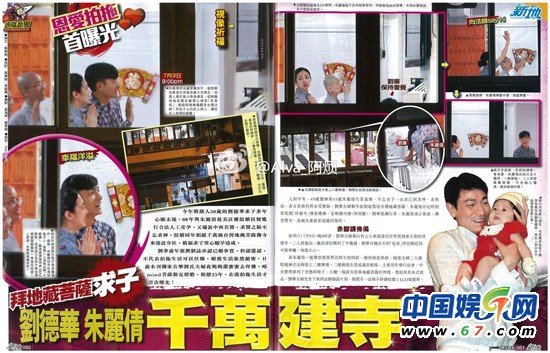 劉德華為求朱麗倩平安產女 向寺廟秘捐3800萬祈福(圖)