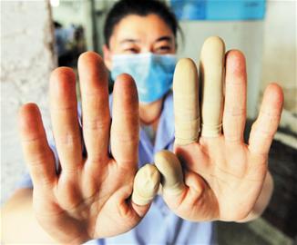 記者看到,多數(shù)點(diǎn)鈔女工的手都很粗糙,有的手上磨出了老繭,摘掉指套的手指被汗水浸得發(fā)白。常年點(diǎn)鈔讓她們的手和胳膊經(jīng)常發(fā)脹發(fā)麻,“數(shù)錢數(shù)到手抽筋”是經(jīng)常的事兒。由于長(zhǎng)時(shí)間低著頭久坐,九成女工患有不同程度的頸腰椎疾病。