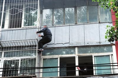 特警準(zhǔn)備翻窗進(jìn)入事發(fā)房屋。本報(bào)記者潘之望攝