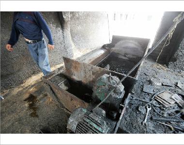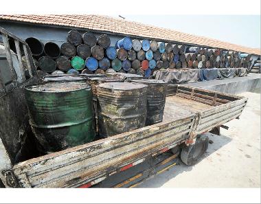 ????隨后,記者又來到村東側(cè)一處大院內(nèi)看到,上百個(gè)大桶整齊擺放在一起,里面全裝滿了很難聞的臟油,在一個(gè)一條龍的煉油車間內(nèi),浸泡池、刮皮機(jī)、液壓機(jī)、煉油池和沉淀池等很是齊全,幾臺(tái)機(jī)器上到處是污垢,看了讓人惡心。在煉油車間里,一臺(tái)臺(tái)機(jī)器看上去十分現(xiàn)代化,但在加工車間內(nèi)的地上,到處污水橫流,許多爛豬皮等下腳料弄得滿地都是。在另一個(gè)上百平米的廠房里,許多豬皮用鹽蓋著,一名工人說,用鹽蓋住豬皮是防止腐爛。記者暗訪后,立即聯(lián)系了即墨食安辦,負(fù)責(zé)人馬上安排相關(guān)工商執(zhí)法人員和記者聯(lián)系趕往現(xiàn)場。當(dāng)場查扣上百桶臟油 “這兩個(gè)加工點(diǎn),去年已經(jīng)查過兩次了,光環(huán)保的就來查過幾次了,但沒想到還是在煉油,真是大膽了。”昨天上午,由即墨食安辦牽頭,很快和工商執(zhí)法人員一起趕到了現(xiàn)場,執(zhí)法人員告訴記者,這兩個(gè)窩點(diǎn)2008年辦了回收豬皮的許可證,可這個(gè)證的經(jīng)營范圍只允許對回收來的豬皮進(jìn)行粗加工后,出售到皮革廠,但經(jīng)營范圍是絕對不能涉及煉油,現(xiàn)在他們超范圍經(jīng)營煉油,就屬于非法煉油。
