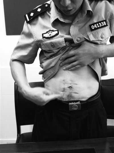 警員秦華曾遭毒販掃射,腹部中兩槍。新京報記者 崔木楊 攝