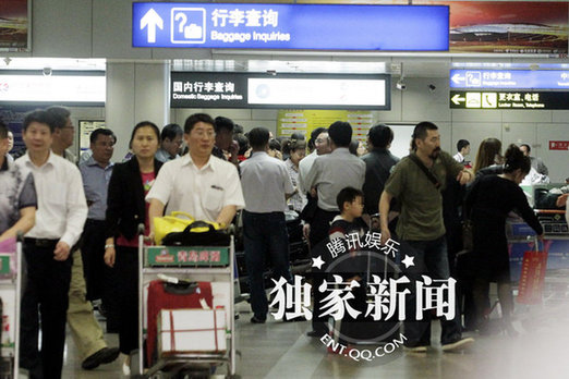 陳建斌和兒子手牽手首先走出閘口,等著蔣勤勤??礃幼?,兒子可能是有些旅途勞累了,撒嬌地擁向父親,陳建斌單膝跪地,父子倆親切地擁抱在一起,小家伙撅著小嘴,可愛的樣子非常招人