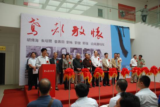 ![]() ????鳶都放懷——中國書法3+3 ????5月12日上午,由中共濰坊市委宣傳部、濰坊市文廣新局、濰坊市文聯(lián)主辦,濰坊市書畫家聯(lián)誼會、濰坊市書法家協(xié)會、郭味蕖美術(shù)館承辦,半島都市報協(xié)辦的“鳶都放懷——中國書法3+3 胡傳海、朱培爾、姜壽田、劉詠、劉健、郭強(qiáng)書法展”,在濰坊郭味蕖美術(shù)館隆重開幕。青島市文聯(lián)黨組書記孫憲政、紀(jì)檢書記劉華民,濰坊市領(lǐng)導(dǎo)于生,市委宣傳部常務(wù)副部長丁 ????開幕式由中共濰坊市委宣傳部副部長范勛成主持。丁漢邦致開幕詞,孫憲政、胡傳海先后講話。中國書法3+3展,是中國書法界的黃金搭檔,他們是由青島的劉詠、劉健、郭強(qiáng)和上海的胡傳海、北京的朱培爾、中原大地的姜壽田六位中青年書法家組成。來自青島的三位書法家都為中國書協(xié)會員,省書協(xié)理事,青島市書協(xié)副主席,他們的作品曾在全國大展屢屢獲獎,在新加坡、韓國、阿聯(lián)酋等國和國內(nèi)許多城市舉辦巡展。胡傳海、朱培爾、姜壽田三位先生分別為中國當(dāng)今書壇三大重要媒體《書法》雜志、《中國書法》雜志、《書法導(dǎo)報》的執(zhí)行主編或常務(wù)副總編,既是著名書法家,又是中國書壇舉足輕重的學(xué)術(shù)權(quán)威,著述頗豐,飲譽(yù)海內(nèi)外。此次展出他們近期創(chuàng)作的書法作品近百件,熔東、南、北、中為一爐,匯真、草、隸、篆于一館,格調(diào)高雅、多姿多采、落墨精妙、雅俗共賞,是一次高規(guī)格、高水平的書法展,為美麗的濰坊增添了一道亮麗的風(fēng)景線,為濰坊書壇送來了清新的藝術(shù)之風(fēng)。必將對擴(kuò)大濰坊與外地的書法交流、推動濰坊書法事業(yè)的繁榮和發(fā)展起到積極的促進(jìn)作用。 ????濰坊召開高端論壇,研討如何打造濰坊書法名城 ????5月12日下午,在濰坊麗景大酒店召開3+3高端論壇,重點研討如何創(chuàng)建濰坊書法名城。
