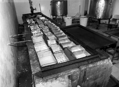 瑞華冷飲廠車間,大池子里盛滿“冷凍液”,冰著半成品(尹亞飛 攝)