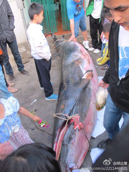 ????21日下午,學(xué)生報(bào)警后,警方和漁業(yè)部門相繼介入,但是都沒找到相關(guān)負(fù)責(zé)人。執(zhí)法部門的工作人員表示,根據(jù)照片可以初步判定是一頭須鯨,是國家二級(jí)保護(hù)動(dòng)物,無論是什么情況都不允許買賣經(jīng)營。