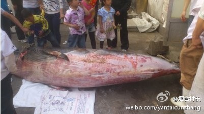 煙臺(tái)一高校餐廳內(nèi)現(xiàn)鯨魚(圖片來源于新浪微博)