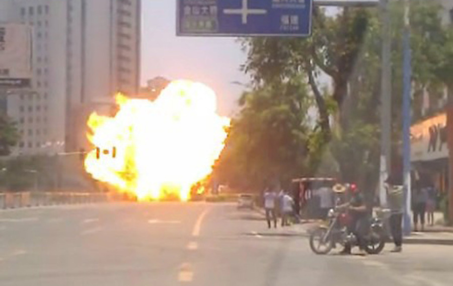 5月22日,廣東潮州市區(qū)發(fā)生一宗汽車自燃并引發(fā)爆炸的事故,一輛運(yùn)載燃?xì)夤薜牧嗀涇囋谶B續(xù)數(shù)聲爆炸巨響后嚴(yán)重?fù)p毀,一名駕駛員被燒傷。