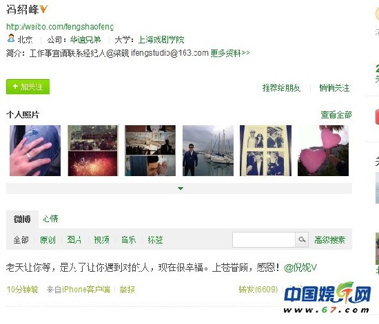 近日有網(wǎng)友爆料,指馮紹峰與“謀女郎”倪妮正在熱戀中,并且已交往了一個(gè)月左右。還有網(wǎng)友拍到了疑似二人一起逛街的照片。對(duì)此,今日馮紹峰在微博上發(fā)表了愛(ài)的宣言:“老天讓你等,是為讓你遇到對(duì)的人,現(xiàn)在很幸福,上蒼眷顧,感恩。”并@了倪妮,大方公開(kāi)了這段戀情。