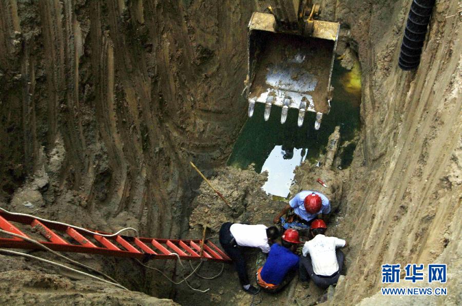 記者晚8時左右在現(xiàn)場看到,為盡快收集泄漏柴油,兩臺挖掘機正在挖坑,坑深約7米,寬4至5米,長20米左右,坑底部有柴油,現(xiàn)場能聞到濃重的柴油味。當?shù)叵狸爢T在隨時待命。
