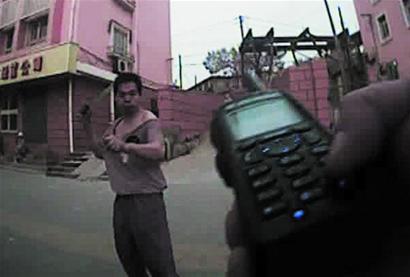 ????40多歲的男子揮動(dòng)著1米多長(zhǎng)的鐵片,沖進(jìn)人群中見(jiàn)人就打,行人嚇得四散奔逃,一名30多歲的男青年被砸中后腦勺,鮮血頓時(shí)涌了出來(lái)。前天晚上7時(shí)10分左右,開(kāi)平路派出所民警首先趕到現(xiàn)場(chǎng),鹽灘派出所和水清溝派出所的民警隨后趕到支援,兩名民警“空手入白刃”搶下男子手中的鐵片,另外6名民警沖上前將其制伏。