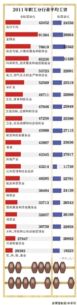 各行業(yè)平均工資一覽:金融業(yè)超9萬(wàn)元奪冠(圖)