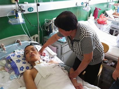 ????“都住院一個多月了,肇事司機就來看過一次!”昨日上午,在青醫(yī)附院急診神經(jīng)外科病房內(nèi),躺在病床上的鄧少偉鼻子里插著氣管,下肢、雙腳等許多部位都纏著繃帶,臉色憔悴,緊閉著雙眼。4月8日,一場突如其來的車禍讓他昏迷至今,而讓家屬感到傷心的是肇事司機不管不問的冷漠態(tài)度,“他給了12500塊錢后就稱沒錢不管了?!编嚿賯サ哪赣H宋女士哭著跟記者說,由于沒錢治病,最后只能是放棄治療。