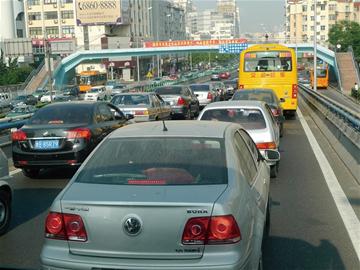 出租車沿著人民路行駛,一路上車輛雖然多,但未擁堵,直到威海路和長春路交界口,由于車輛太多而綠燈較短,出租車等了幾分鐘才通過。此后在威海路上車速一直提不起來,在威海路與臺東六路交界口,兩名指揮交通的交警發(fā)揮了大作用,否則車輛會堵成一個死疙瘩。直到右拐進入延安路,才終于順暢起來,很快就到達了15中,時間為8:10。