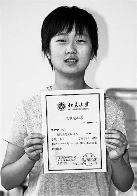 網(wǎng)友提及的李寧寧(如圖)是漢中市勉縣一中2011級高中畢業(yè)生。她在去年的高考中,以709分的絕對高分,奪得陜西高考理科總分第一。爆料網(wǎng)友不但用肯定口吻稱李寧寧被退學(xué),還道出李從北大退學(xué)的原因:“聽說因無法跟上北大的課程及教學(xué)方式”。
