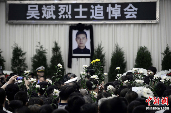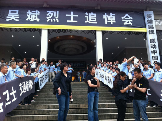 6月5日上午8時30分許,“最美司機”吳斌烈士追悼會在杭州殯儀館隆重舉行,來自中央部委、浙江省、杭州市的領(lǐng)導(dǎo)、吳斌親屬、吳斌生前所在單位領(lǐng)導(dǎo)和同事,以及來自社會各界人士及市民群眾約3000人參加了追悼會,沉痛哀悼這位在生命最后時刻恪守職責(zé),挽救生命的平民英雄司機。