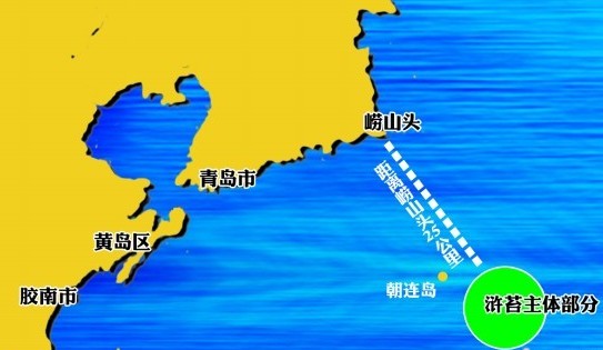 6月4日滸苔主體部分位置示意圖。(記者 孫傳浩)