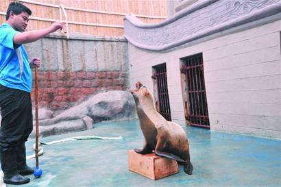 ????昨天上午,記者來到水族館內(nèi)的海獸館看到,飼養(yǎng)