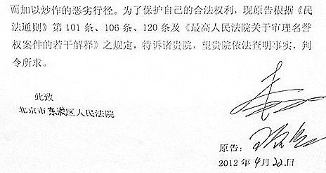 而昨日有資深網(wǎng)友在微博上指出,訴狀上李湘、王岳倫夫婦的簽名看起來像是一個“蠢”字,感覺與李湘、王岳倫平時的簽名“形似而神不似”,這一簽名極有可能是張一一方面惡搞所致。法律界人士分析稱,如張一一偽造李