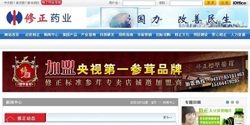 修正藥業(yè)官網(wǎng)截圖