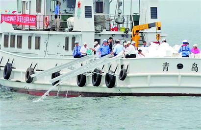 昨日,青島海洋漁業(yè)部門在膠州灣開展增殖放流活動。