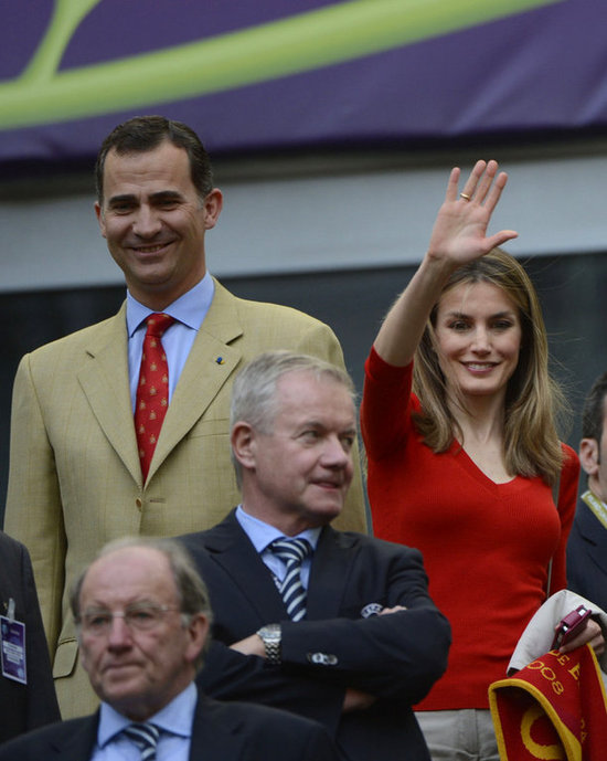 西班牙王妃助陣歐洲杯 紅衣?lián)岀R顯貴族范(組圖)