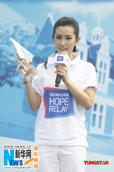 一大早,一身白色運動裝扮的李冰冰現(xiàn)身鳥巢南廣場,高溫曝曬下,李美人不懼陽光紫外線的強烈“摧殘”,全程與廣大運動愛好者和圍觀群眾一起為“奧運希望接力跑”加油吶喊。陽光高溫讓大家難免不適,李冰冰不時用活動流程的文件遮陽,避免被曬傷。結束儀式,李冰冰以“奧運希望接力跑”希望大使的身份亮相,現(xiàn)場領跑數(shù)萬名參與者共同完成了一公里的接力跑路程,為希望小學籌集善款,傳遞慈善的力量。
