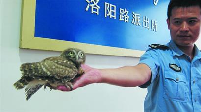 那只小貓頭鷹毛都沒(méi)長(zhǎng)硬,就被人當(dāng)成狗那么遛,虐待得不成樣子?!鼻疤焐衔?0時(shí)左右,熱心市民王先生帶著8歲的女兒經(jīng)過(guò)張村河畔,看到一名20多歲的男青年正拿著一只巴掌大小的貓頭鷹拋上拋下,這只貓頭鷹明顯翅膀受了傷,根本就飛不高,爪子上還拴著一根繩子,剛想起飛就會(huì)被男青年拽得摔在地上。王先生和女兒覺(jué)得男青年的行為太過(guò)殘忍,隨后撥打了附近洛陽(yáng)路派出所的電話(huà),執(zhí)勤民警幾分鐘后趕到了現(xiàn)場(chǎng),制止了男青年的遛鳥(niǎo)行為,將其帶回派出所。