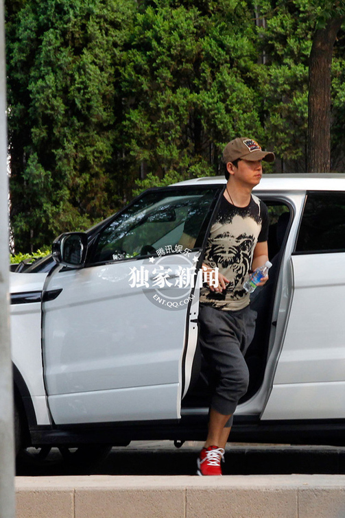 當(dāng)天,潘粵明駕車載著董潔來到東四環(huán)附近一家音像店。無奈車子只能停在馬路對面,二人只好走著穿越馬路。潘粵明習(xí)慣地拉起董潔的手走過馬路,很是體貼??上б粝竦戤?dāng)天沒有開門,二人只好選擇離開。對妻子呵護(hù)備至的潘粵明緊緊牽著董潔的手,或是將手搭在董潔的肩上,甜蜜勁仿佛一對熱戀中的小情侶。