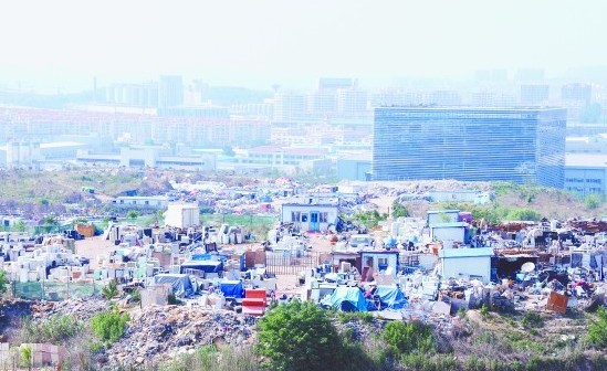 ????最大土堆上有片棚戶區(qū)