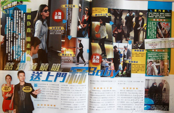 據(jù)港媒爆料,Angelababy宣傳完《第一次》后便直接飛往上海,為在當(dāng)?shù)嘏e行的發(fā)布會作準(zhǔn)備。當(dāng)天,Angelababy遮黑超,在工作人員的陪伴下上車。機(jī)敏的記者發(fā)現(xiàn)黃曉明戴帽遮黑超尾隨其后,當(dāng)聽到一聲電話響后立刻跑去停車場,上了一部7人車。原來他只為等待Angelababy的電話通知。記者在Angelababy下榻的酒店守候,Angelababy到后先行上去。隨后黃曉明的車也抵達(dá),可能是宣傳人員提前告知酒店有記者守候,無奈黃曉明只得到附近的便利店躲避,這一躲就是20分鐘。