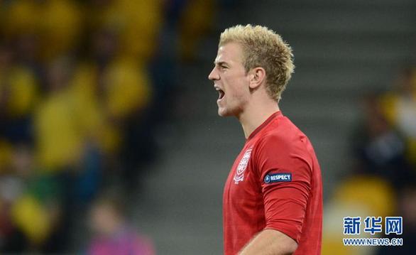 6月15日,英格蘭隊守門員哈特在比賽中。當日,在烏克蘭首都基輔舉行的2012年歐洲足球錦標賽D組第二輪比賽中,英格蘭隊以3比2戰(zhàn)勝瑞典隊。