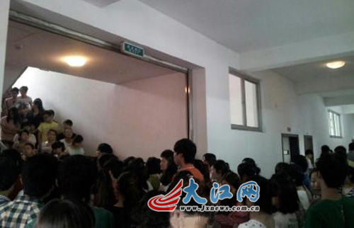 16日下午,記者聯(lián)系到景德鎮(zhèn)陶瓷學(xué)院黨辦張主任。他告訴大江網(wǎng)記者,大約有1000名學(xué)生被迫留在教室內(nèi)不能離開?!安蛔寣W(xué)生離開是出于保密的需要,因?yàn)檫@是國考,保密必須放在第一位。事情發(fā)生后,我們立即采取應(yīng)急措施,把保密放在第一位,使泄題的可能性減少到最低程度?!睆堉魅握f。
