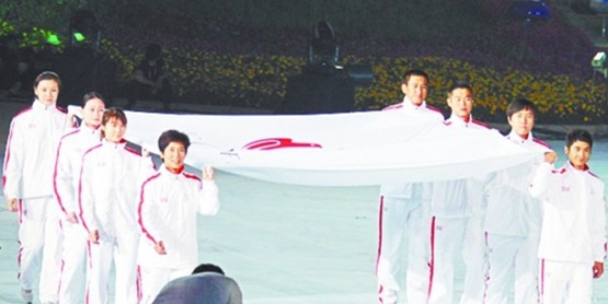 ????當(dāng)晚8時50分,亞奧理事會會旗進(jìn)入開幕式現(xiàn)場,八名身著白色運動服的旗手聯(lián)手將旗子擎進(jìn)會場,這是八名中國體育界的名人。排在最前面的兩名旗手十分引人注意,扯住旗子一角的是悉尼奧運會體操冠軍邢傲偉和前世界冠軍、山東省乒乓球運動管理中心主任喬云萍。其中 ,邢傲偉是煙臺體育的驕傲,而喬云萍則成為旗手中四名青島健兒的代表。原來,除了喬云萍,旗手中還有另外三名島城健兒,他們分別是亞洲蝶后、世錦賽金牌得主周雅菲,前著名國腳、前國青隊主教練宿茂臻以及男子國際象棋特級大師卜祥志。