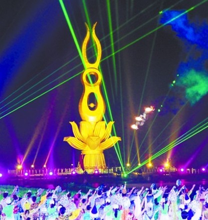 ????與以往大型活動開幕式以人多取勝不同,亞沙會的開幕式刻意避免了“人海戰(zhàn)術(shù)”,突出本地化特征。據(jù)了解,開幕式的表演團(tuán)隊中 ,有90%的演員來自山東的表演團(tuán)體,比如山東藝術(shù)學(xué)院、山東體育學(xué)院、萊州武校。