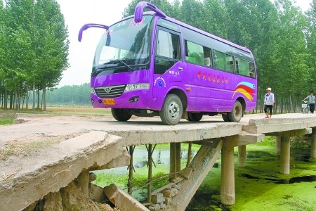 上午11點半,一輛城鄉(xiāng)公交車駛到橋前。司機先讓乘客從橋頭下車,等車緩緩通過橋后,再讓乘客上車。公交車司機告訴記者,這趟車是從西姜寨徐口村到開封市區(qū)相國寺車站的,車程有30公里,途經(jīng)13個村莊,人少時一趟能拉10多人,最多的時候有三四十人。司機師傅說:“從這過整天擔驚受怕,總是先讓乘客下車,等車安全過橋才讓他們再上車。這是我開車經(jīng)過的13個村與開封市區(qū)連接的必經(jīng)之路,只要勉強能過還是得過,沒辦法啊。”