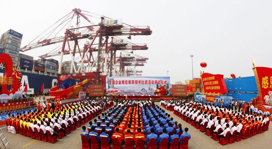 全國企業(yè)崗位練兵技術(shù)比武活動啟動儀式暨全國技能人才隊(duì)伍建設(shè)經(jīng)驗(yàn)交流會在青島港隆重舉行