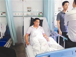 接報后,記者來到深圳市龍華人民醫(yī)院外三科30號病床,見到了受傷的王紅光。他一手打著點(diǎn)滴,一手連接著監(jiān)控儀器,鼻子上還插著吸氧管,臉上有多處擦破的痕跡。