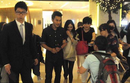 楊冪甜蜜挽劉愷威離開酒店