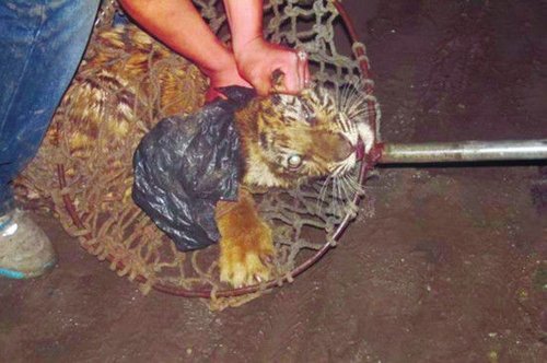 眾人合力將小老虎抓住