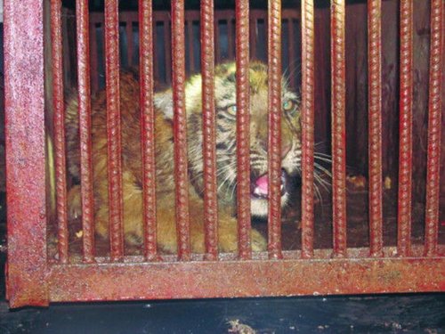 小老虎被關(guān)進(jìn)籠內(nèi),隨后送往動(dòng)物園
