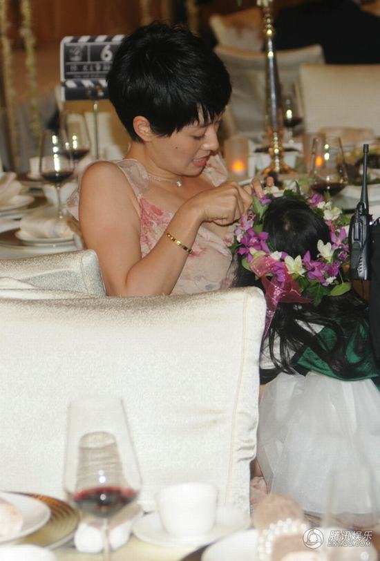 現(xiàn)場(chǎng),文愛(ài)馬擔(dān)任花童。其一露面,便被記者圍堵,驚嚇得忙躲母親身后。