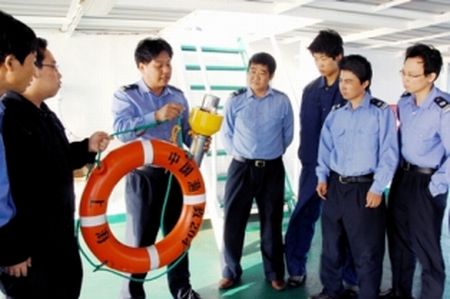 資料圖:中國漁政204船船員對遇險漁船救生設(shè)施使用進(jìn)行演練。