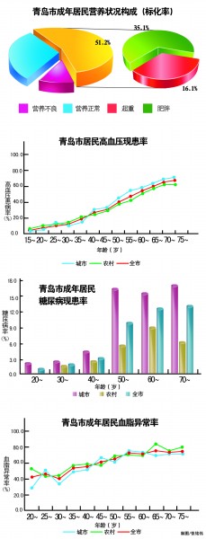 ????市疾控中心提供給記者的《青島市居民營養(yǎng)與健康狀況》中提到,島城“居民慢性病形勢嚴峻,青島市居民的高血壓、糖尿病和血脂異常的患病形勢嚴峻,農(nóng)村形勢值得重視?!?/p>