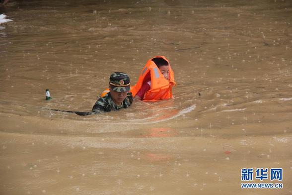 湖南強(qiáng)降雨道路被淹 消防戰(zhàn)士端澡盆搶救嬰兒(組圖)