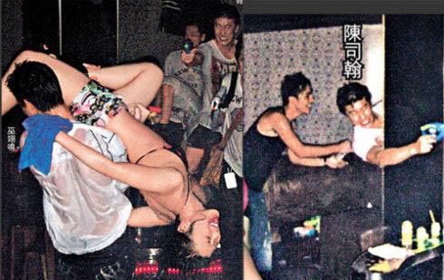 陳慧琳出道以來形象健康,相反其在港事業(yè)發(fā)展的33歲胞弟陳司翰,卻喜歡流連夜店。喝到臉紅的陳司翰狀甚興奮地拿著水槍,與大班女性友人互射,眾人甚至拿起顏料互潑,場面越烏煙瘴氣,在場男男女女越見情緒高漲,其間有兩、三名艷女更索性脫去上衣,上身僅穿性感比基尼跟一眾猛男以水槍肉搏,表現(xiàn)極盡狂野。玩得投入的陳司翰躲在柱后舉起水槍向友人突擊