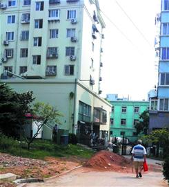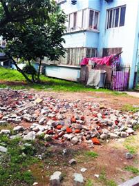 從小區(qū)南門進(jìn)入,剛過鐵門一堆沙土便擋在了記者面前,占據(jù)了大部分馬路。一名拿著馬扎準(zhǔn)備外出乘涼的小區(qū)居民說,沙土是最近幾天才堆放在這里的,目的就是為了把小區(qū)坑洼不平的馬路填平。不過,工人把沙土全都堆在居民進(jìn)出的路上,給大家的生活帶來了很大的影響。在沙土堆西側(cè)的綠地上,還鋪了一大堆碎石頭,過去種的花草被壓在石頭下面,有的已經(jīng)干枯死了。 “不知道是誰放的,反正有段時間了。 ”該居民說。