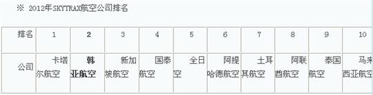 2012年SKYTRAX航空公司排名
