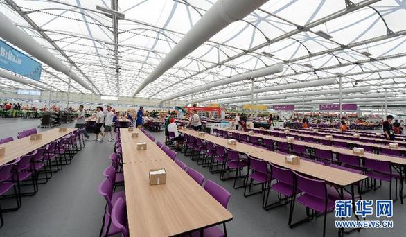 圖為7月24日拍攝的倫敦奧運(yùn)村供運(yùn)動(dòng)員、教練員和官員就餐的主餐飲中心。