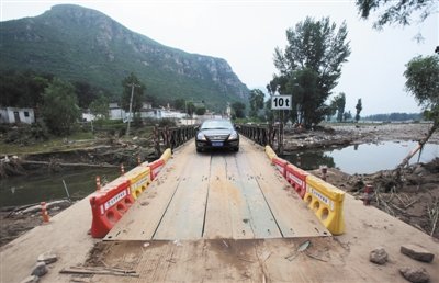 昨日,房山周口店鎮(zhèn)黃山店村,村里所有的橋都被沖毀。
