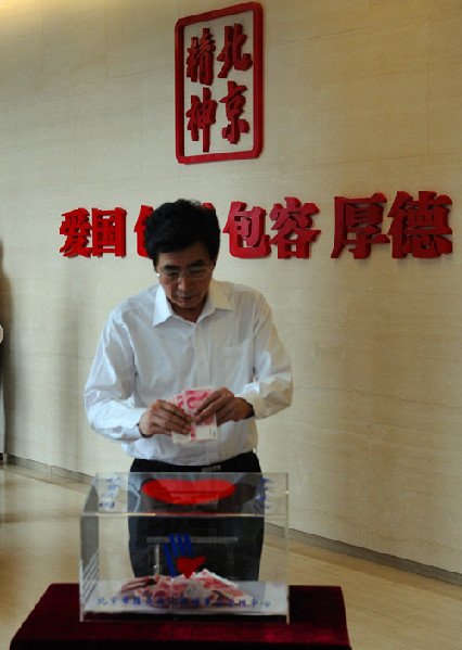北京市委書記郭金龍為救災(zāi)捐款
